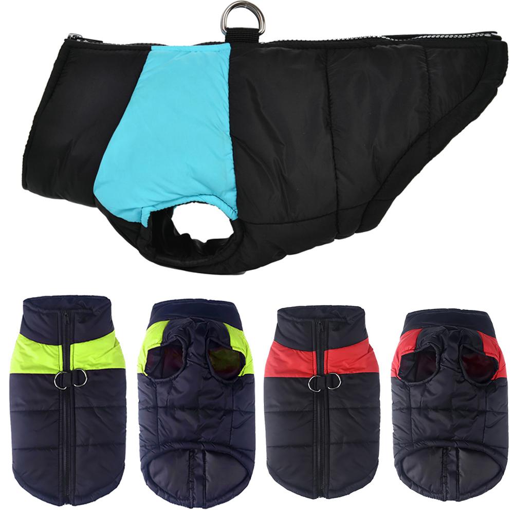 Dog Ski Suits Winter Warm PP Cotton Pet Clothing for Small Big Dog Sleeveless D-ring Big Dog Jumpsuit Water Proof Splicing Cover — купить товар онлайн с бесплатной доставкой по всему миру!