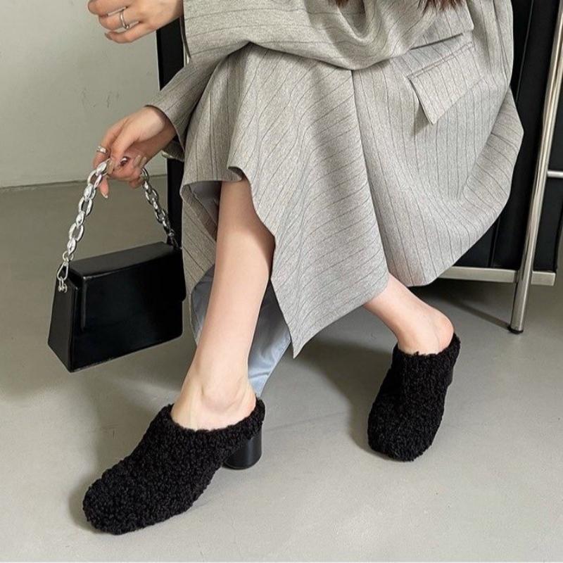 Новые однотонные простые удобные толстые теплые тапочки с круглым носком на плоской подошве нескользящие модные повседневные теплые тапочки на высоком каблуке