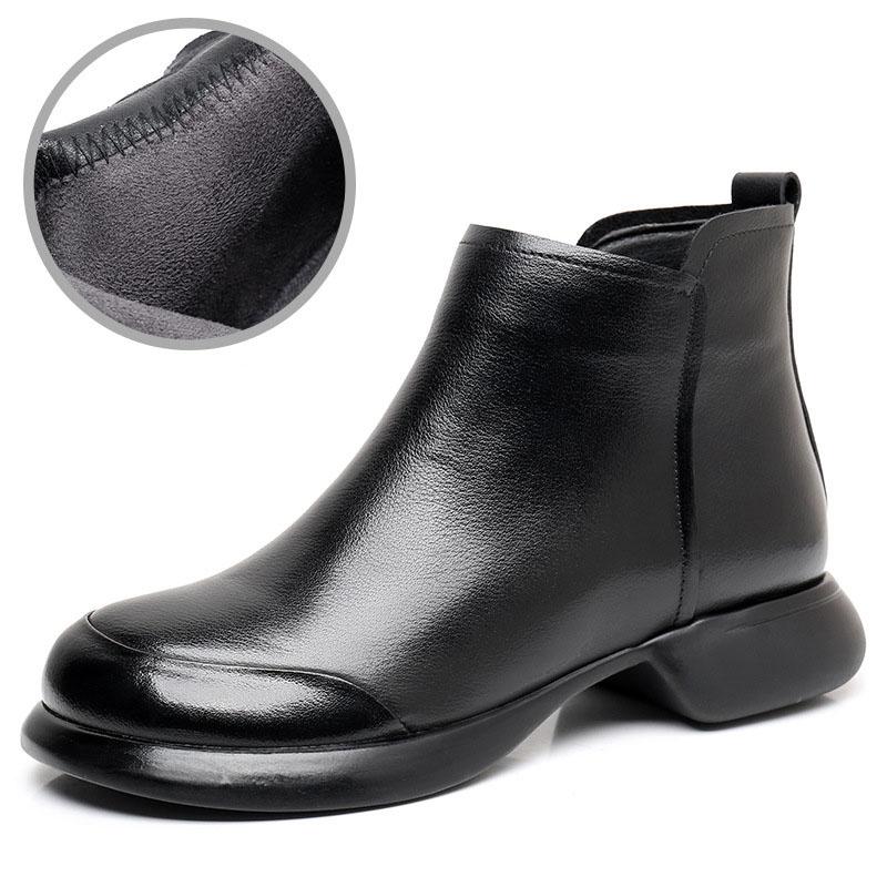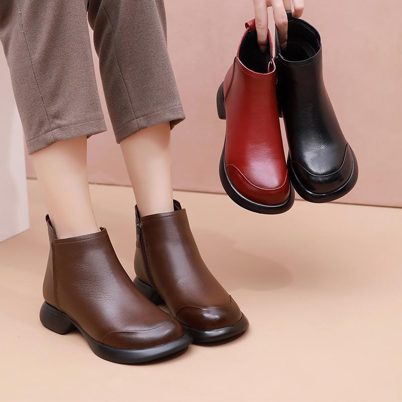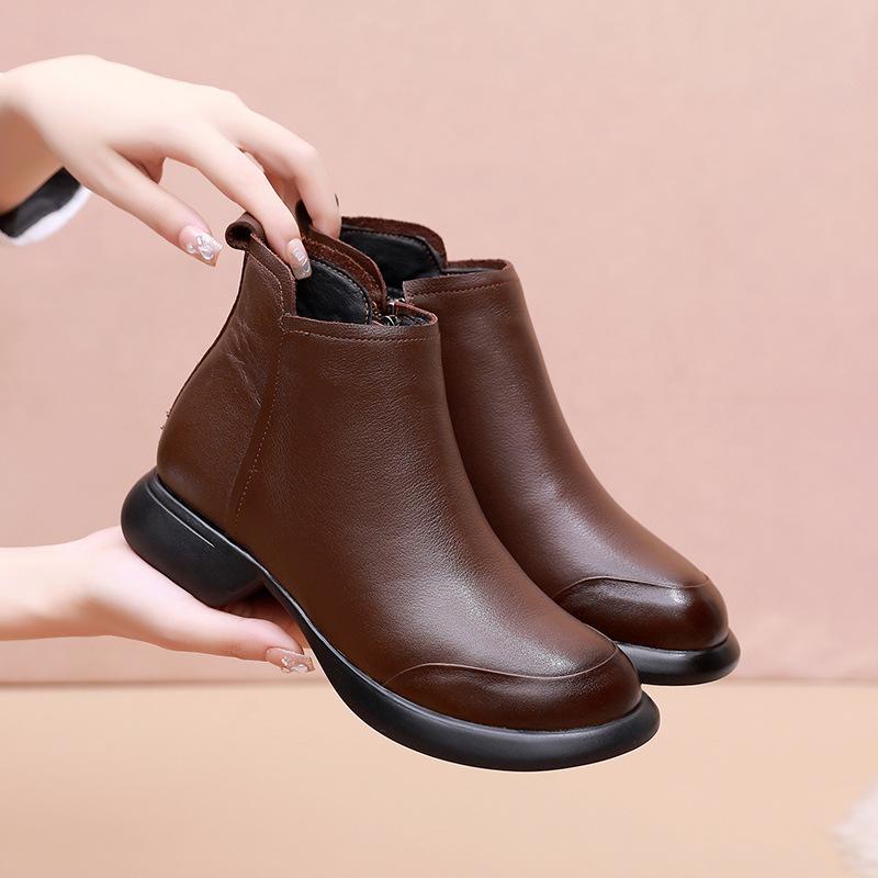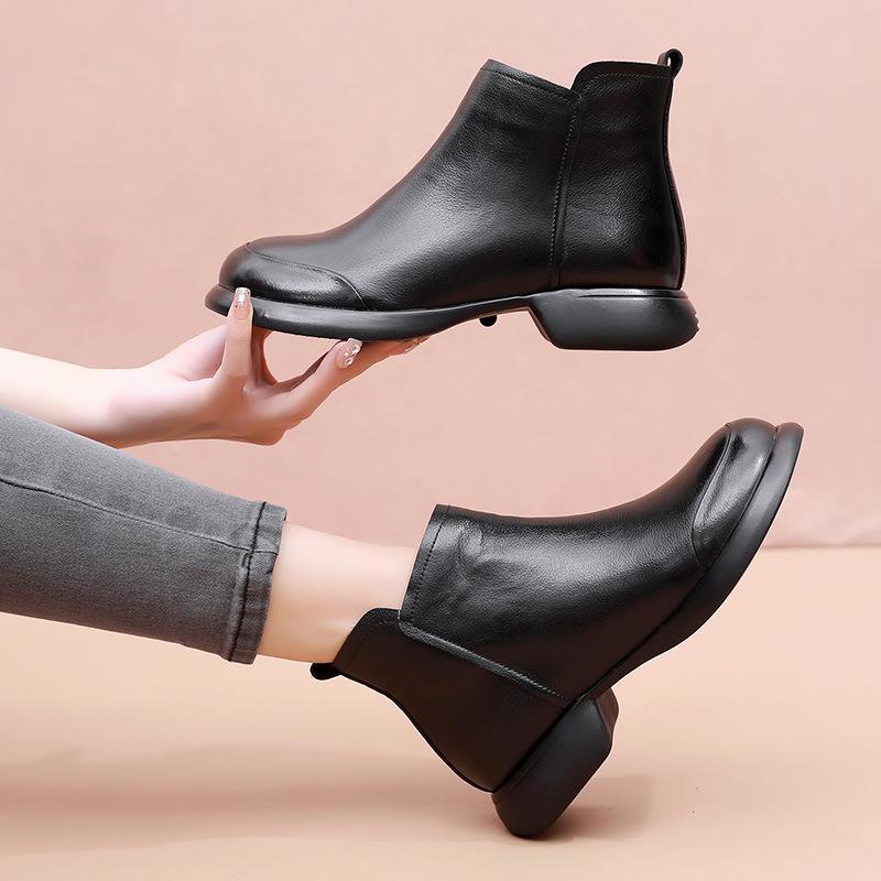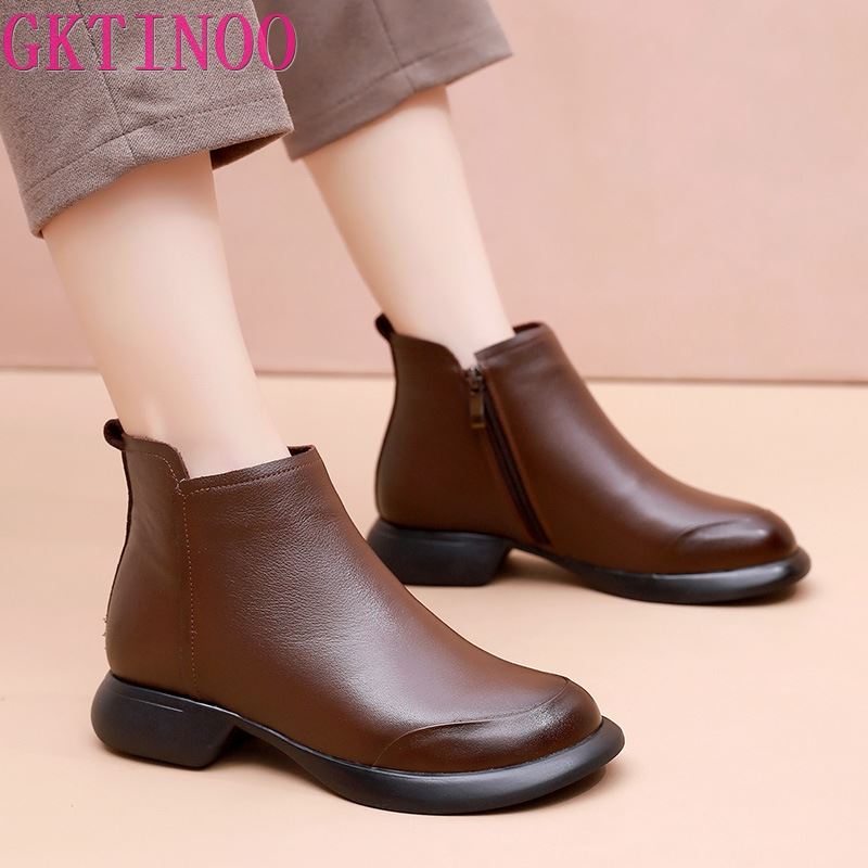GKTINOO 2024 Осень Зима Женские Ботинки Натуральная Кожа Плоский Каблук Боковая Молния Мягкая Подошва Ретро Стиль Повседневные Матери Короткие Ботинки
