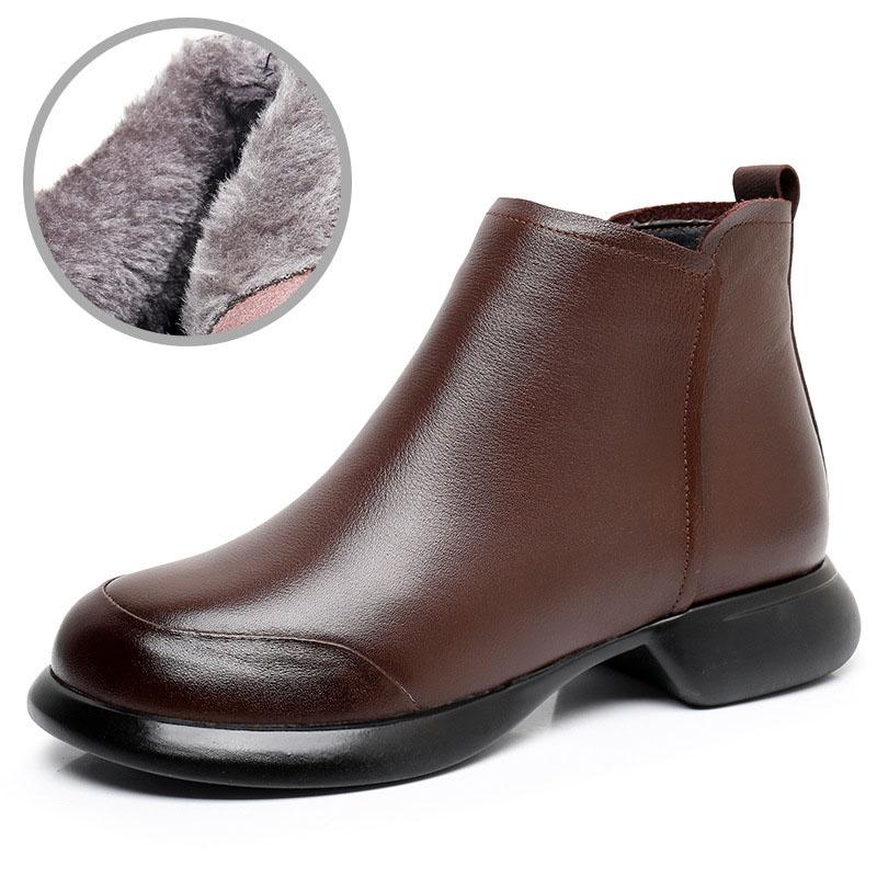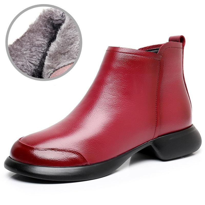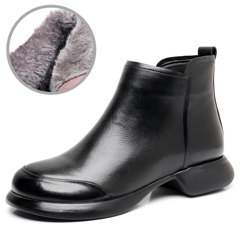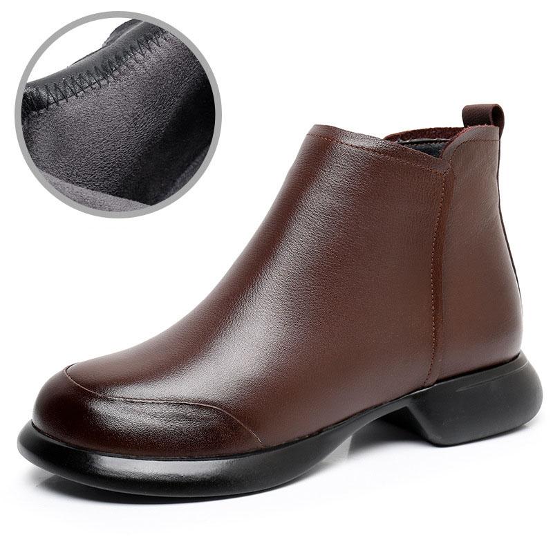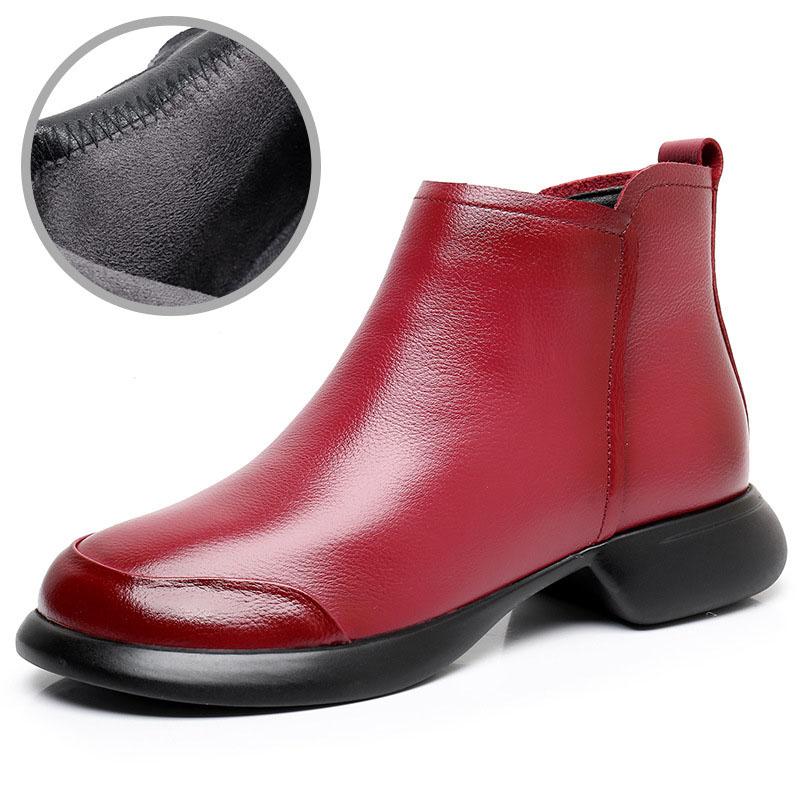 GKTINOO 2024 Осень Зима Женские Ботинки Натуральная Кожа Плоский Каблук Боковая Молния Мягкая Подошва Ретро Стиль Повседневные Матери Короткие Ботинки