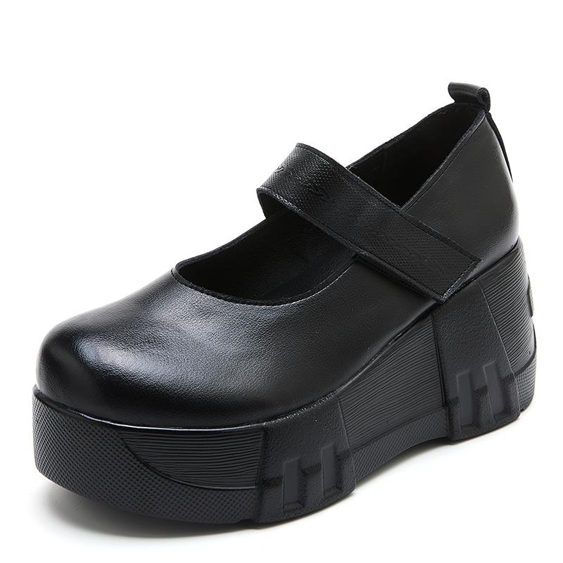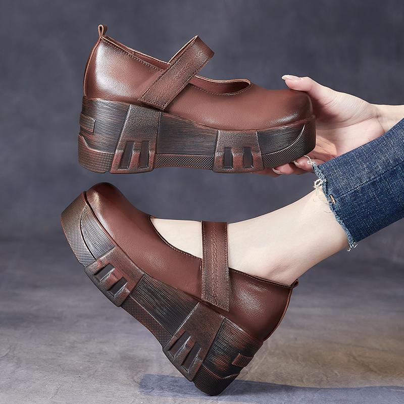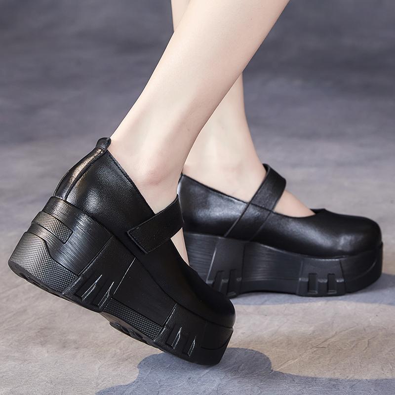 GKTINOO 2024 Весна Ретро Женские Туфли из Натуральной Кожи 7 см Клиновидный Каблук Обувь Толстая Подошва Повседневные Женские Туфли на Платформе