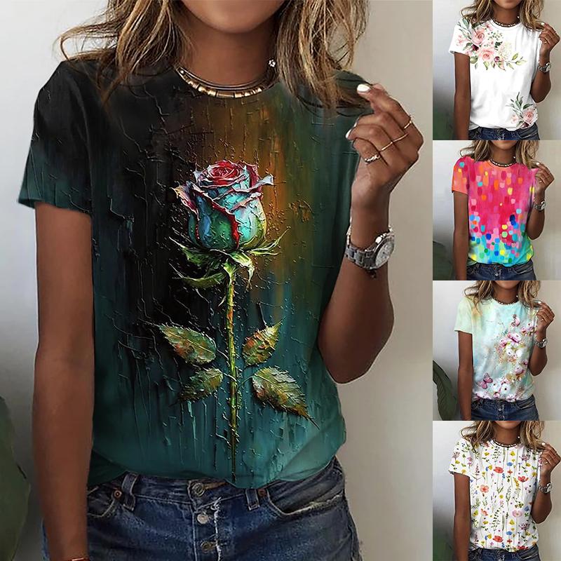 Модная футболка с круглым вырезом и 3D-принтом, женская футболка с коротким рукавом, свободная футболка, летний женский повседневный пуловер EMA — купить товар онлайн с бесплатной доставкой по всему миру!