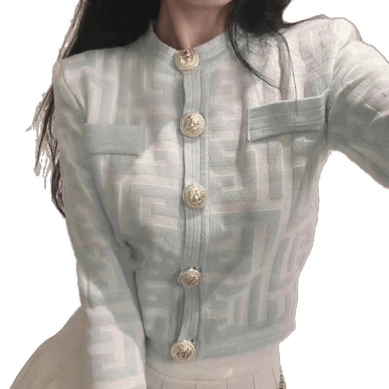 Французский ретро вязаный кардиган: Женская короткая куртка-свитер Осень/Зима 2024