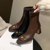 Камелия Замшевые Вставки Высокий Каблук Женские Осень Зима 2025 Новые Ботильоны на Блочном Каблуке Винтажные Ботильоны