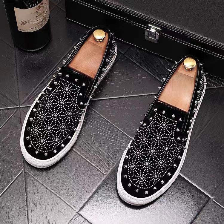 Новые мужские повседневные туфли из кожи Tide, модные роскошные туфли для скейтбординга на плоской подошве с заклепками, туфли для отдыха без застежек