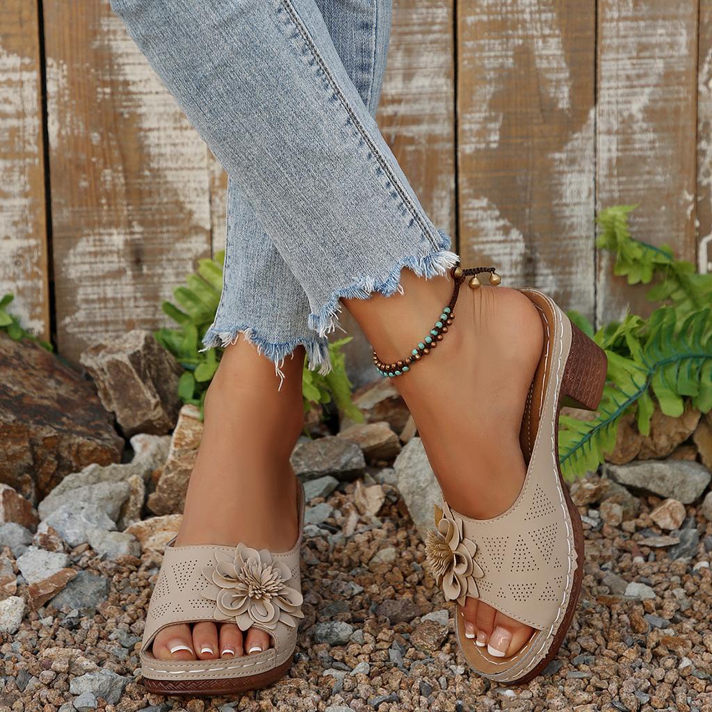 Мода 2025 Новые женские босоножки на высоком каблуке с цветочным декором Летняя мода Повседневные удобные шлепанцы для женщин