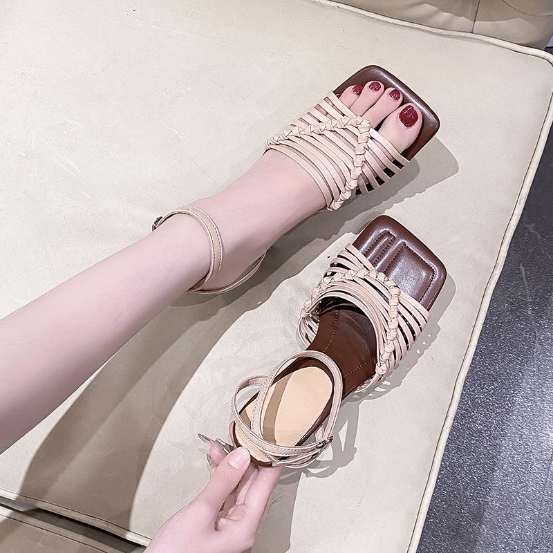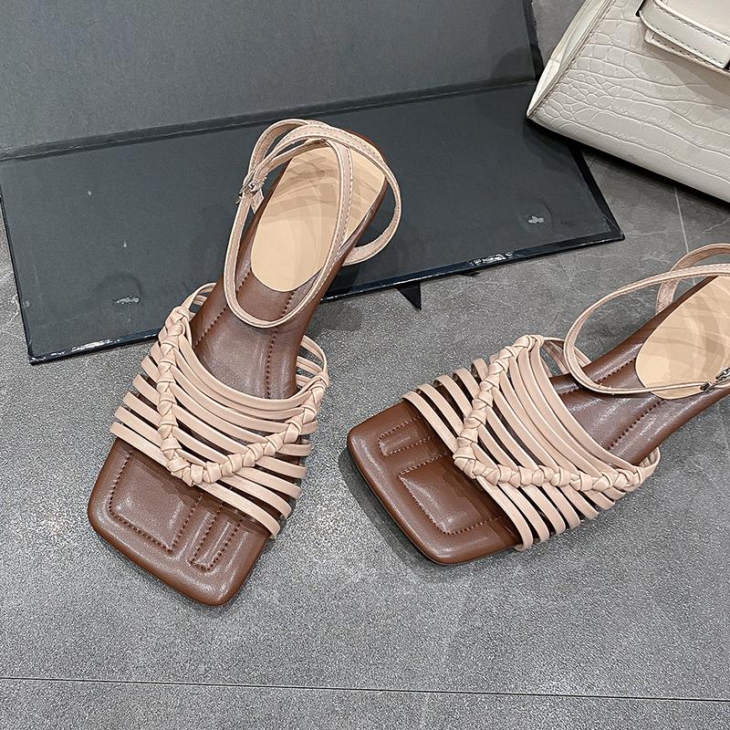 Мода 2025 Коричневые сандалии Женские Летние Новая Мода Женские Сандалии Открытый Носок Туфли-лодочки Женская Обувь Платье Мягкая Подошва Каблук Высокая Обувь