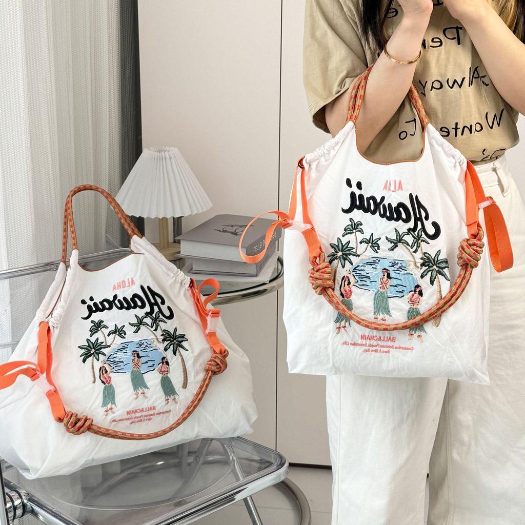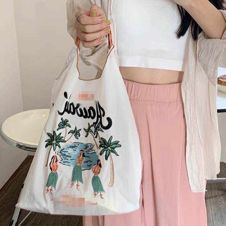Женская вышитая складная холщовая сумка-тоут через плечо большой вместимости