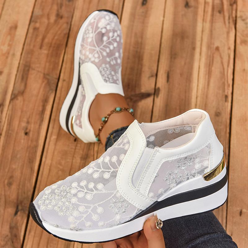 Мода Мода Вышитые Туфли на танкетке для Женщин Летние Сетчатые Дышащие Кроссовки на платформе Женские Легкие Слипоны Повседневная Спортивная Обувь