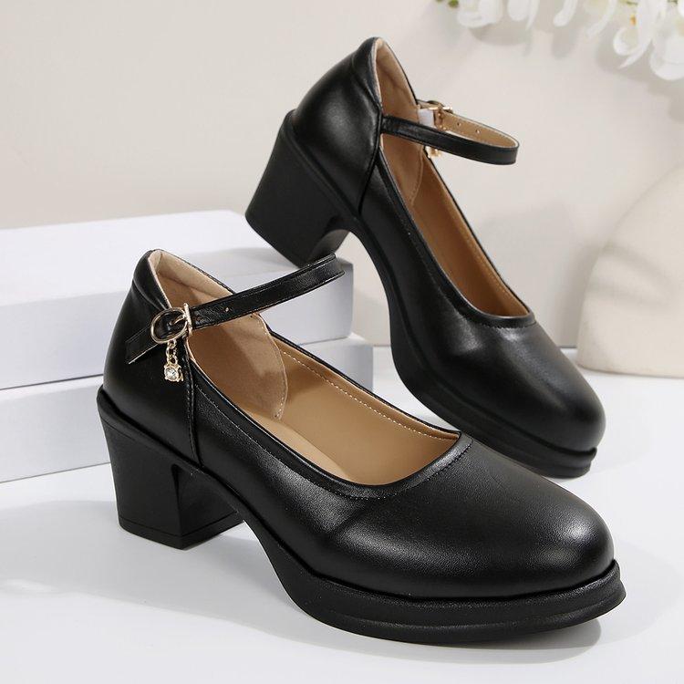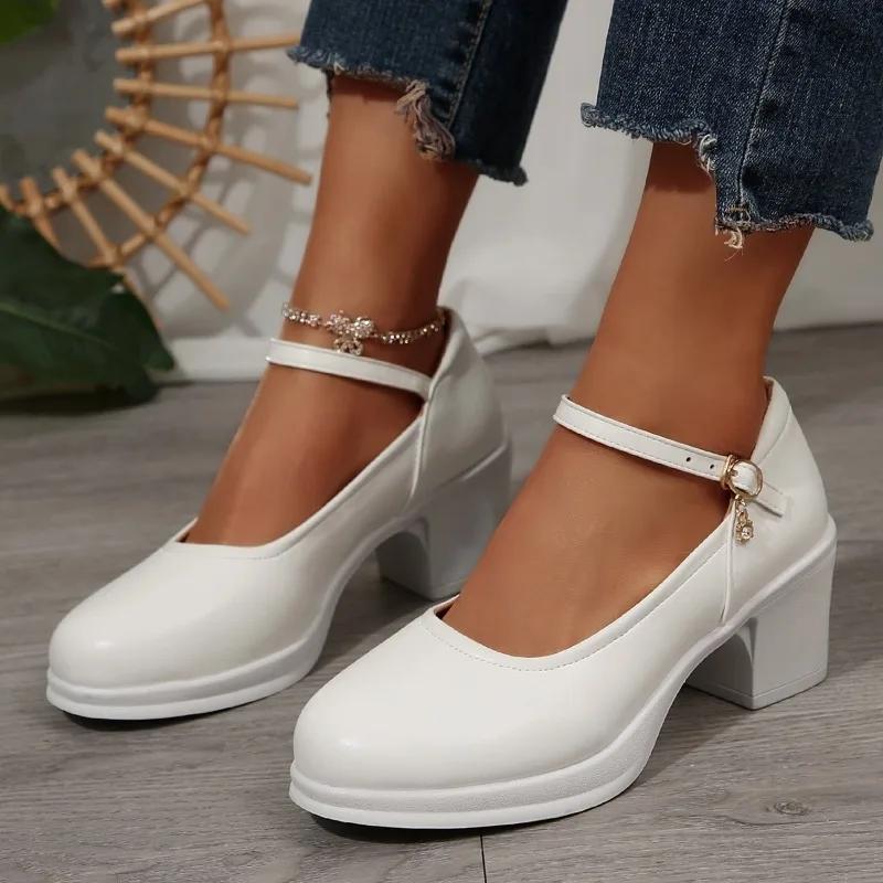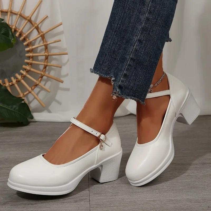 Модные туфли-лодочки на массивном каблуке с круглым носком и ремешком на щиколотке, туфли Мэри Джейн для женщин, элегантные туфли на высоком каблуке, офисная обувь, большой размер, Chaussure Femme