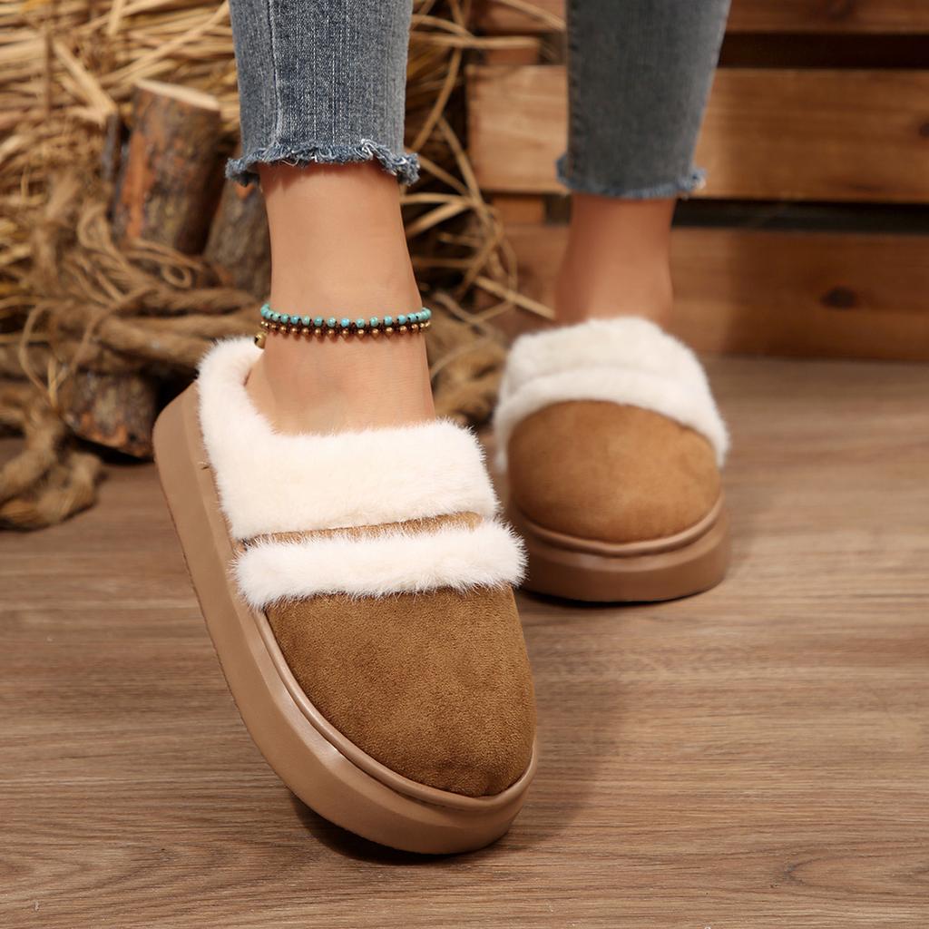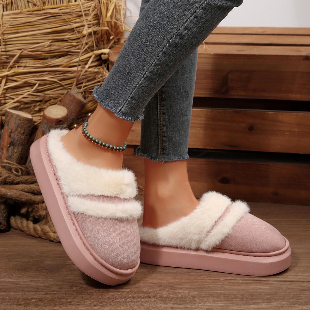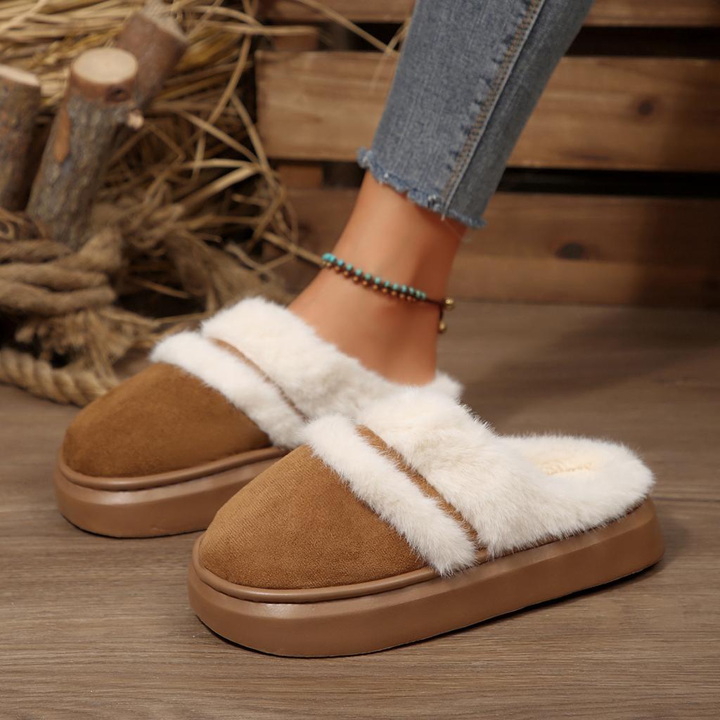 Мода 2025 Новые меховые тапочки для женщин Зимние пушистые модные теплые на толстой подошве плюшевые уютные шлепанцы Зимняя домашняя хлопковая платформа
