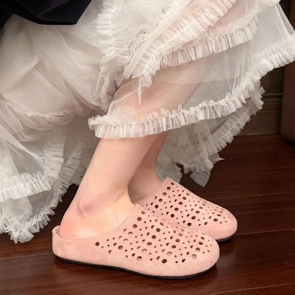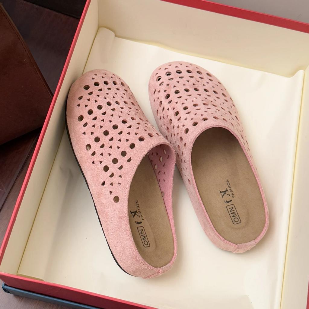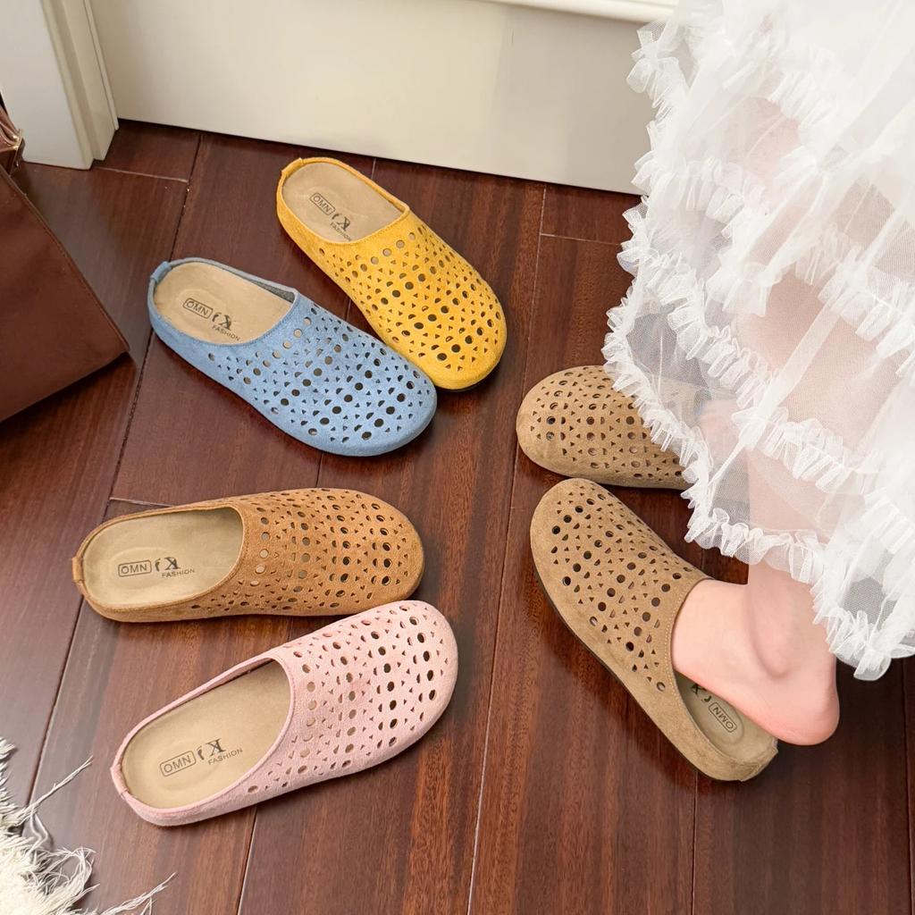 Мода 2025 Замшевые клоги для женщин Мюли Пробковая стелька Перфорированная женская обувь с поддержкой свода стопы Модные нескользящие уличные пляжные шлепанцы 26