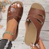 Модные женские повседневные шлепанцы на танкетке Лето 2025 Легкие Нескользящие Пляжные сандалии Женские Плетеные шлепанцы на платформе из искусственной кожи Большой размер