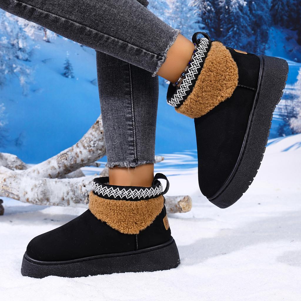 Модные женские зимние теплые короткие плюшевые сноубутсы 2025 Зимние разноцветные на толстой подошве меховые ботильоны Модная вышивка хлопковая обувь