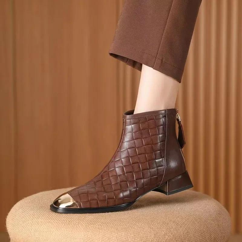 Модные женские ботильоны на толстом каблуке 2024 Весна/Осень/Зима Новые ретро ботильоны на среднем каблуке Задняя молния Клетчатые кожаные ботинки