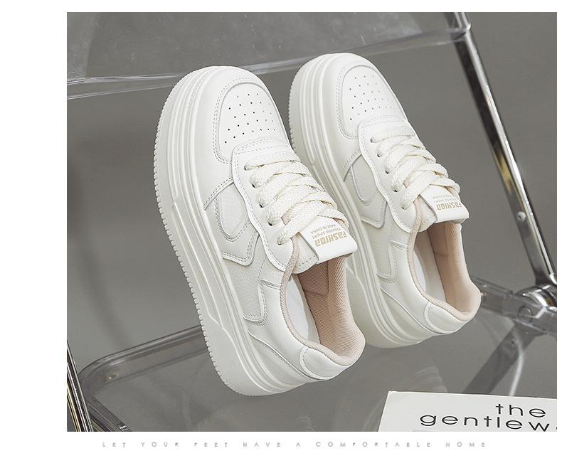 Модные кожаные кроссовки на толстой подошве с увеличением роста 2025 Ранняя весна Новая корейская версия всех маленьких белых кроссовок Женский досуг