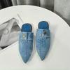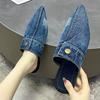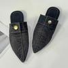 Модные осенние новые туфли-лодочки с острым носком, глубоким вырезом и заклепками, на мягкой подошве, нескользящие, износостойкие, модные джинсовые шлепанцы