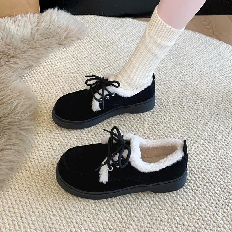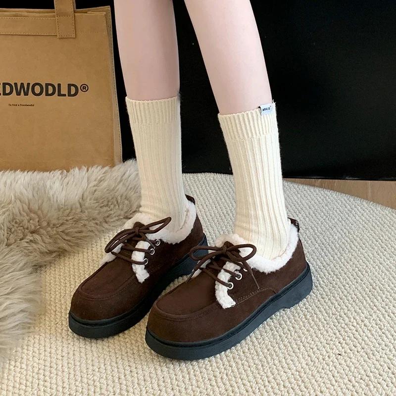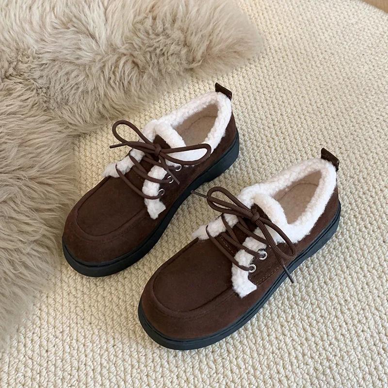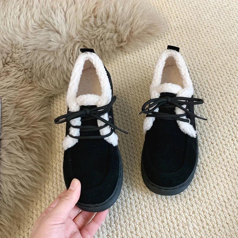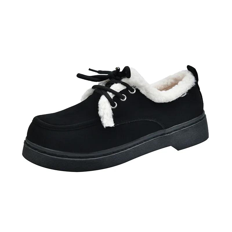 Модные зимние новые толстые хлопковые ботинки женские модные с круглым носком замшевые на шнуровке мягкая подошва нескользящие короткие ботинки