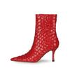 Мода 2025 Новые Большие Размеры 45 Осень Зима Женские Короткие Ботинки 6.5см Высокий Каблук Короткий Плюш Черный Красный Змеиный Ботильоны Бренд Женская Обувь