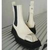 Мода 2025 Новые Металлический Квадратный Носок Платформа Платформа Челси Ботинки Показывать Тонкие Черные Короткие Ботинки Женские Британский Фан Автомобильные Ботинки