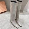 Модные сапоги до колена из коровьей кожи с каменным узором, черно-абрикосовые, женские, осенне-зимние, на низком каблуке, с квадратным носком, длинные, в стиле ретро, размеры 34-44