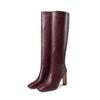 Модные новые сапоги до колена с квадратным носком, квадратным каблуком, простые черные, бежевые, коричневые, европейско-американская мода, для通勤, женские сапоги, размер 35-43