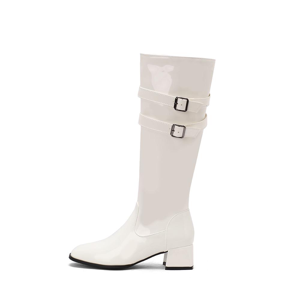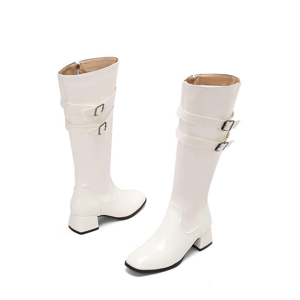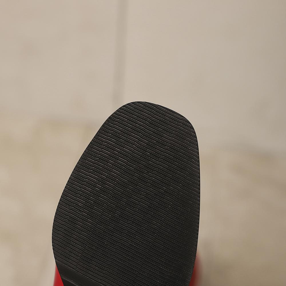 Красно-черные женские ботфорты до колена, круглый носок, средний устойчивый каблук, маленькие и большие размеры 32 46