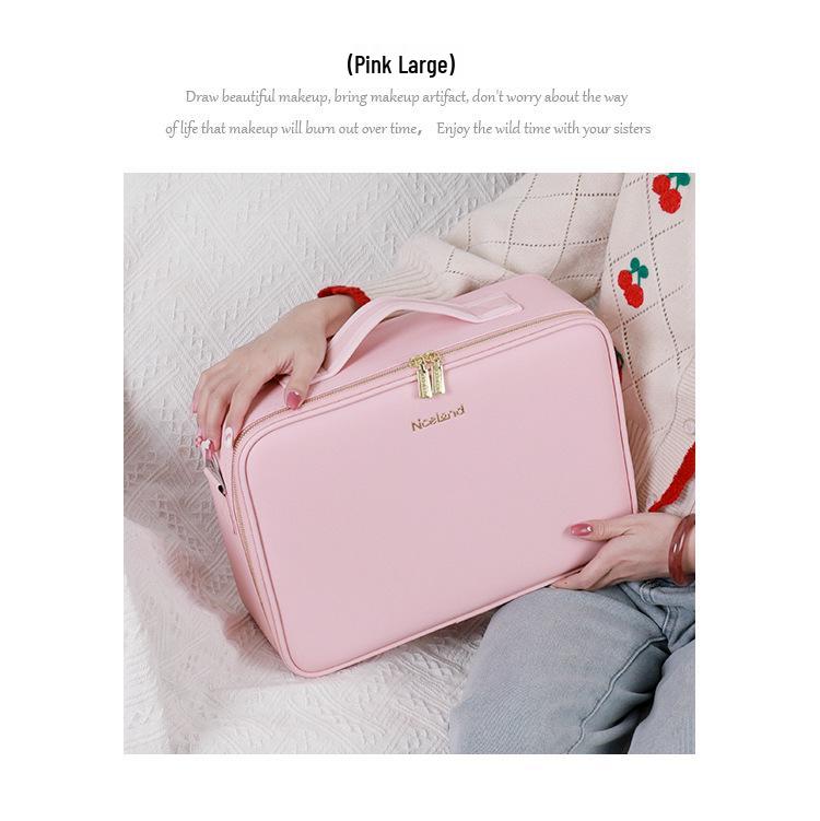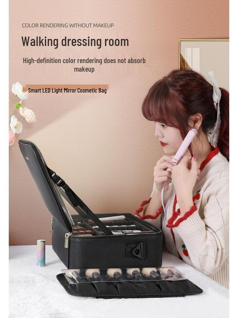 Косметичка большой вместимости с зеркалом, подсветкой и съемными разделителями - Портативный дорожный органайзер для косметики