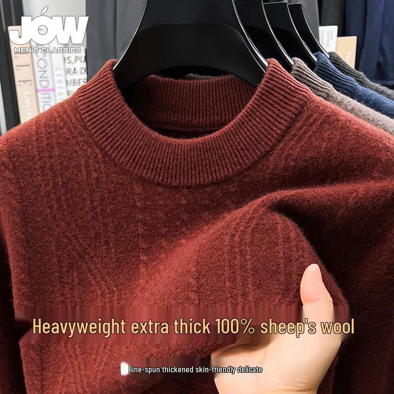 JOW Мужской тяжелый жаккардовый пуловер из чистой шерсти с полувысоким воротником