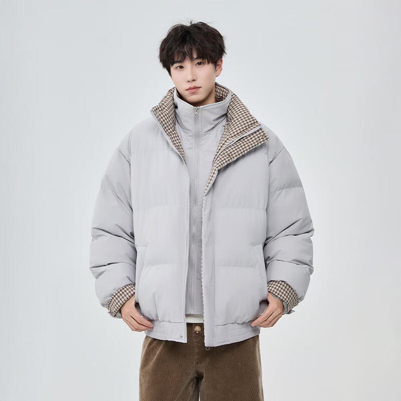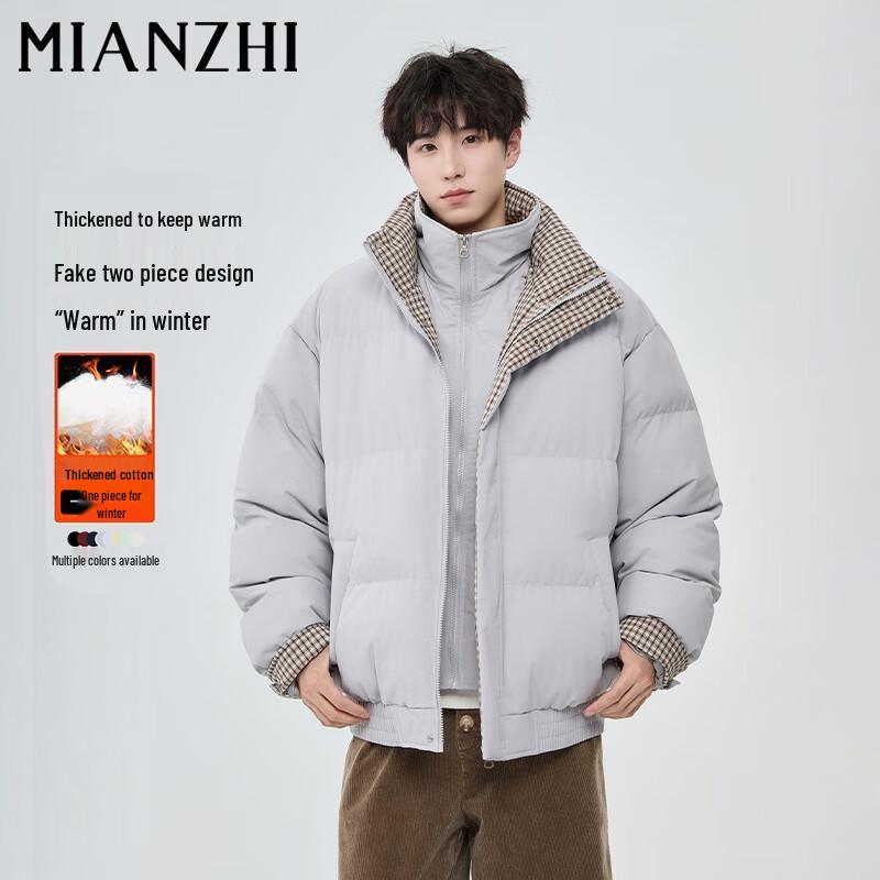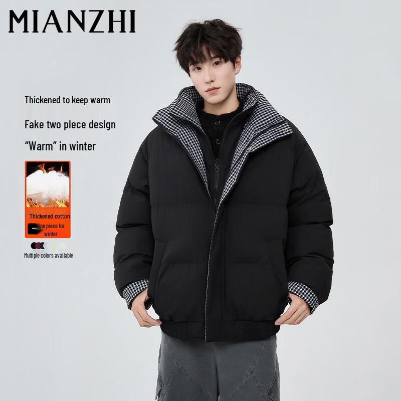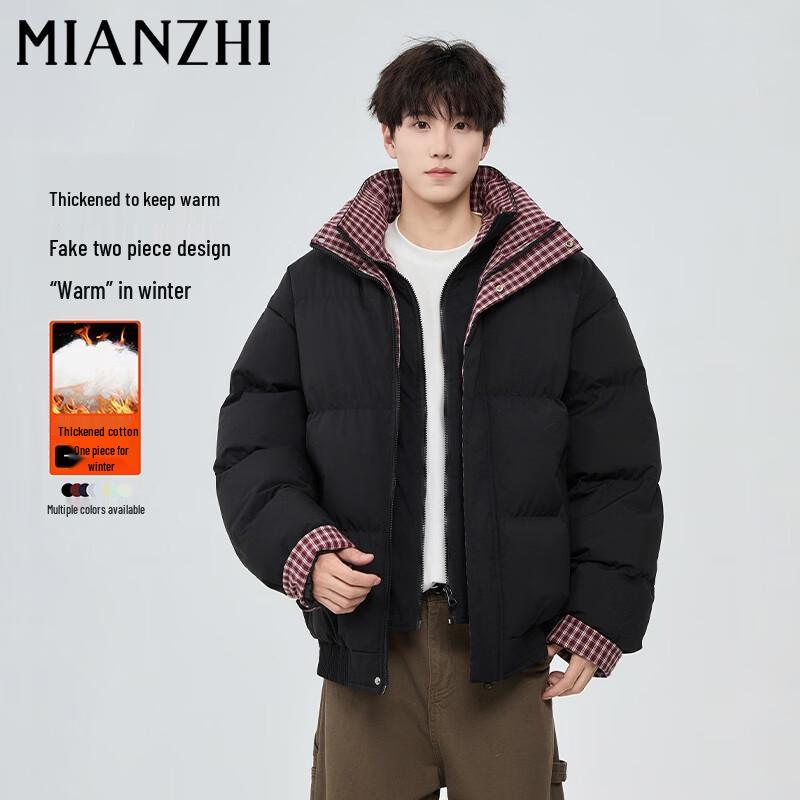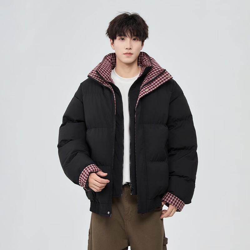 Мужская зимняя куртка из искусственной двухслойной ткани с клетчатой вставкой, воротником-стойкой и подкладкой