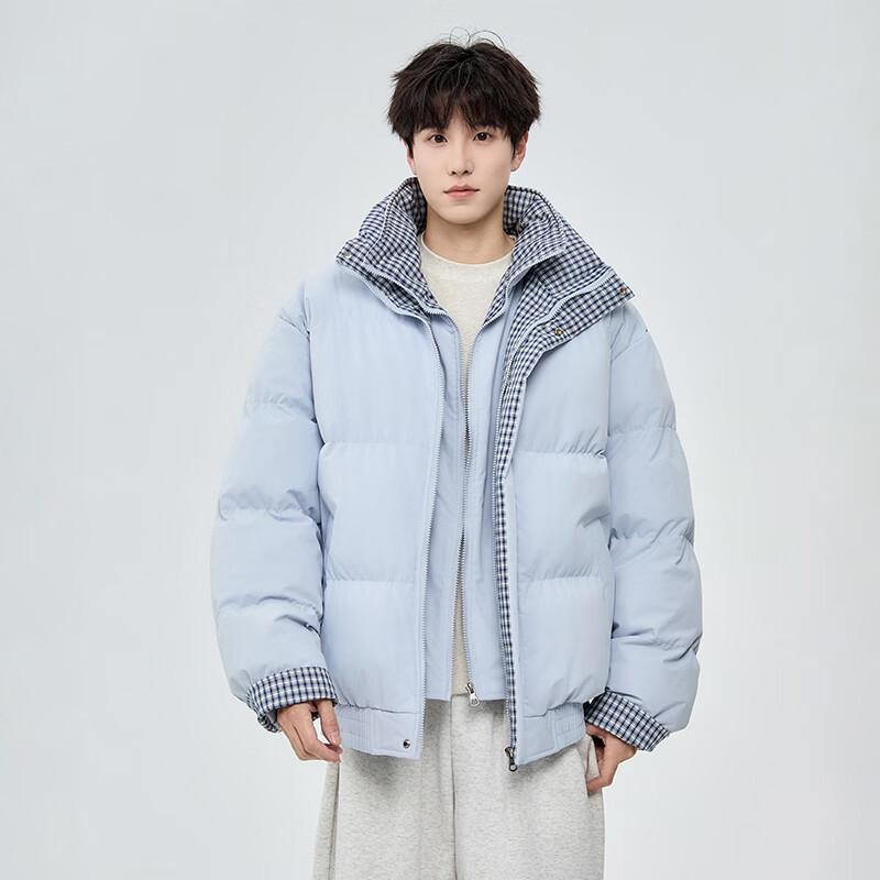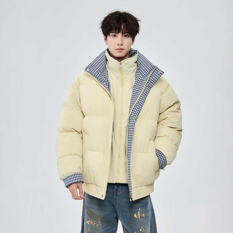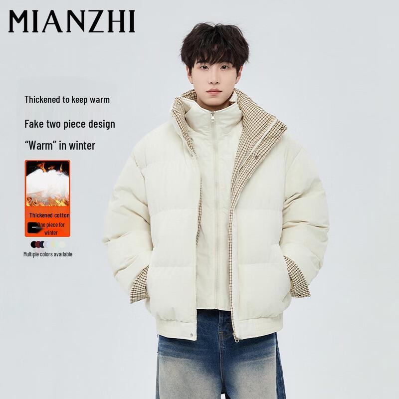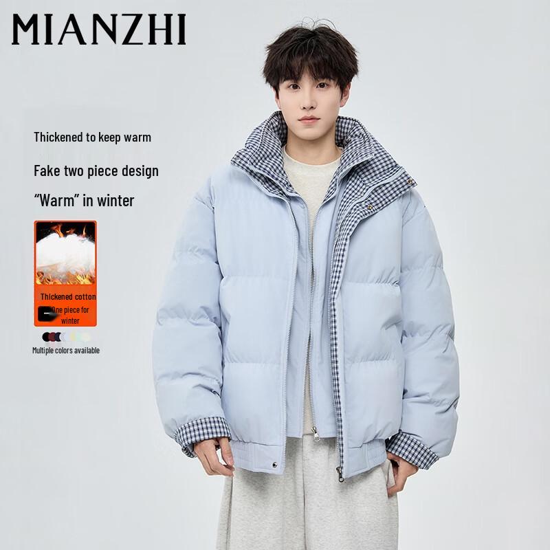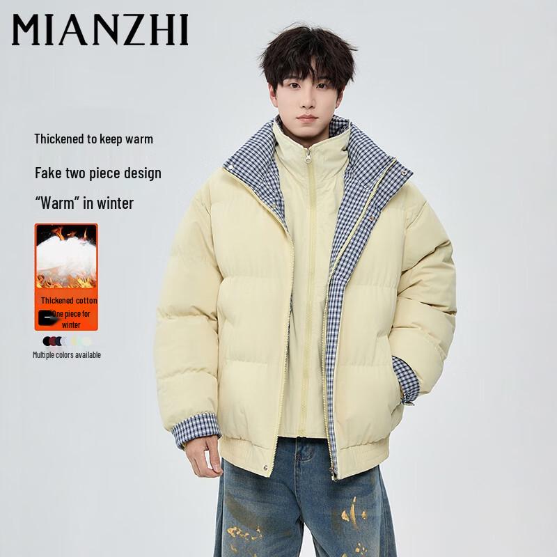 Мужская зимняя куртка из искусственной двухслойной ткани с клетчатой вставкой, воротником-стойкой и подкладкой