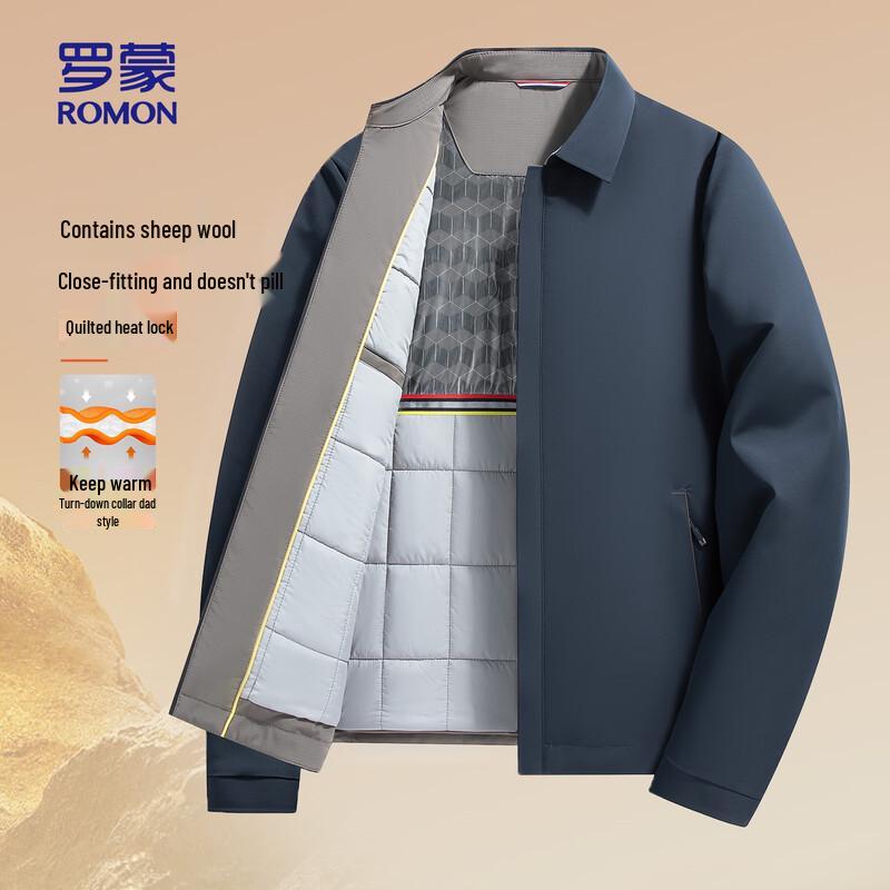 Romon Men's Business Casual Turn-down Collar Thick Cotton Jacket