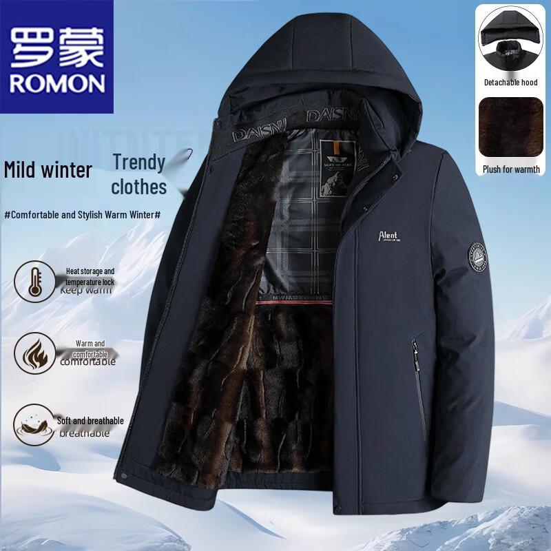 ROMON Мужская зимняя куртка с флисовой подкладкой и утеплителем, со съемным капюшоном