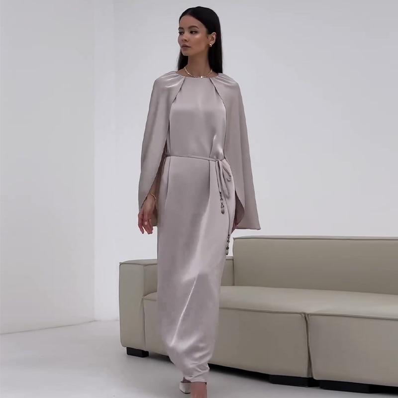 Осень 2024 Европейский и американский однотонный элегантный наряд с длинным рукавом и поясом, подчеркивающий фигуру