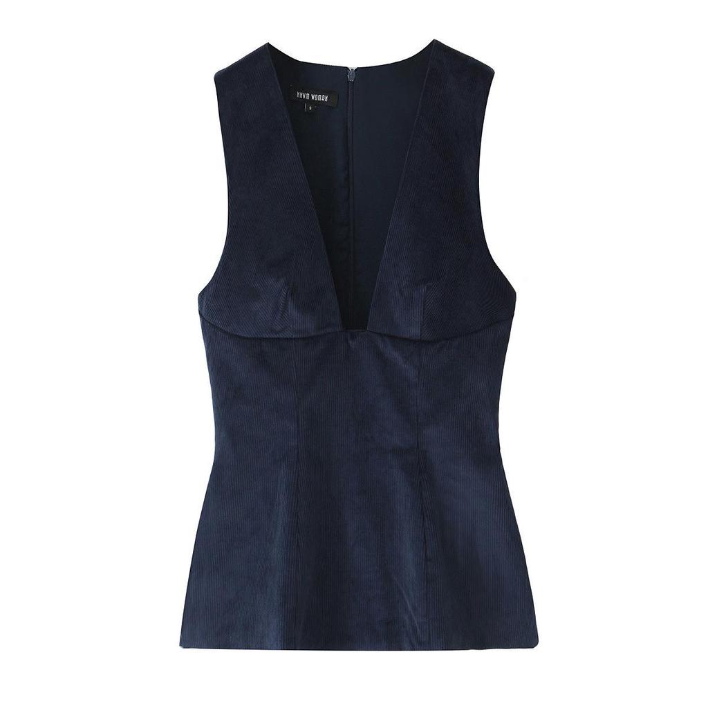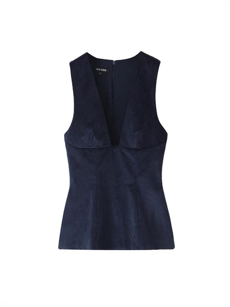 Европейская и американская женская мода 2024: Модный вельветовый жилет без рукавов для осени