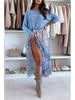 2025 Новая летняя европейская и американская шифоновая юбка с принтом на резинке для женщин