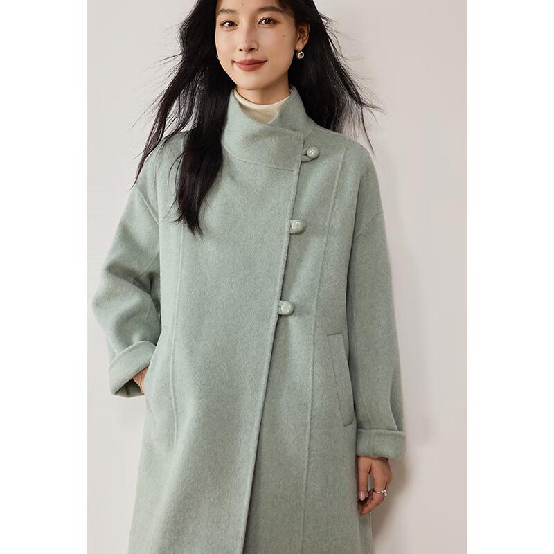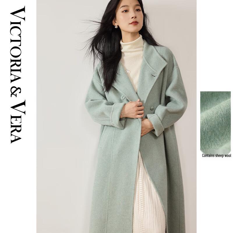 VICTORIA&VERA Women's Winter Long Wool Double-faced Stand Collar Coat V9017D17