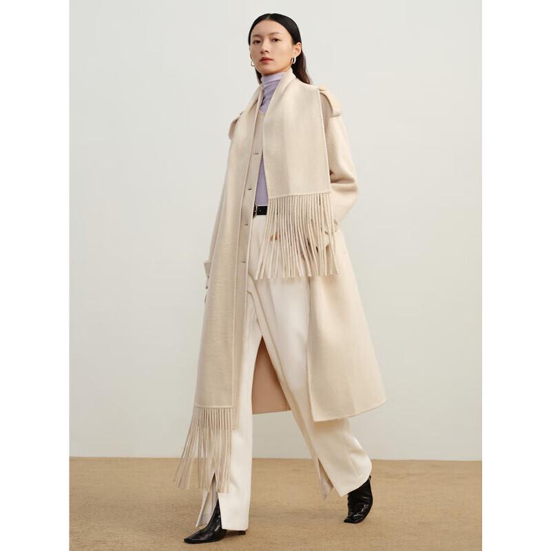 JUZI Annakou Женское шерстяное двустороннее длинное пальто с бахромой-шарфом — купить товар онлайн с бесплатной доставкой по всему миру!