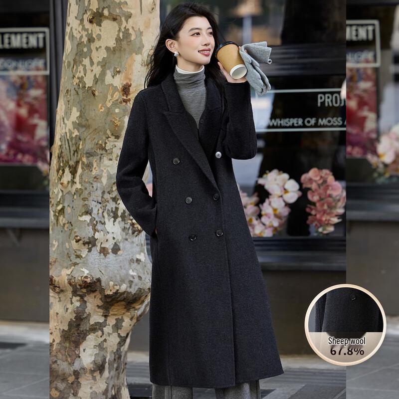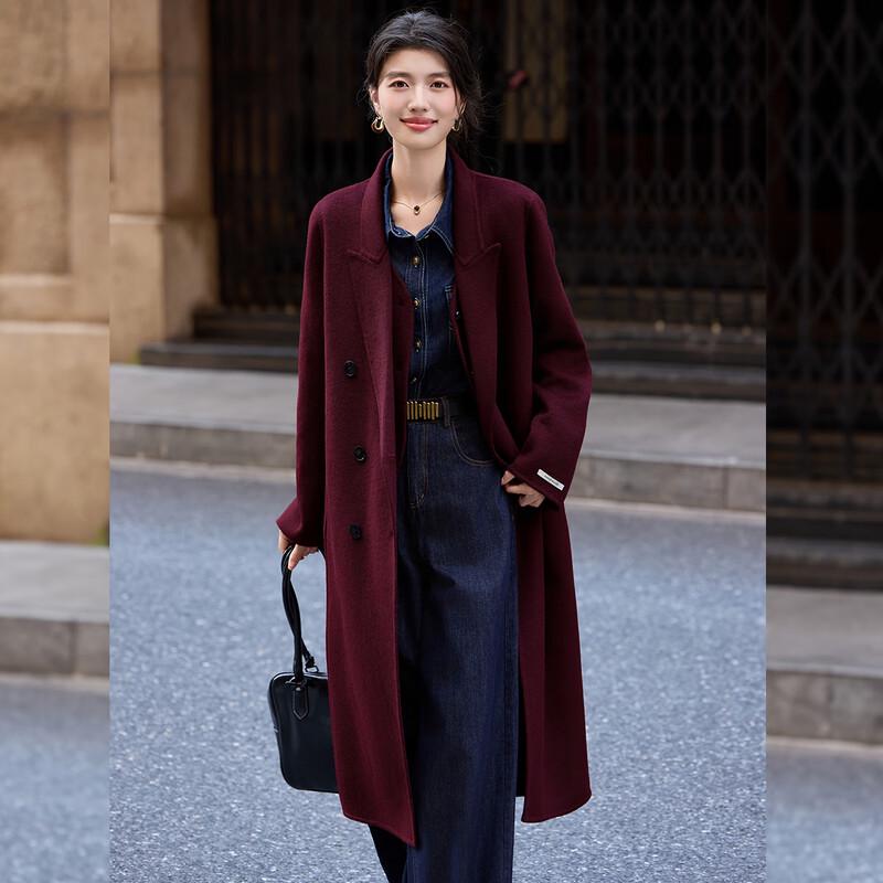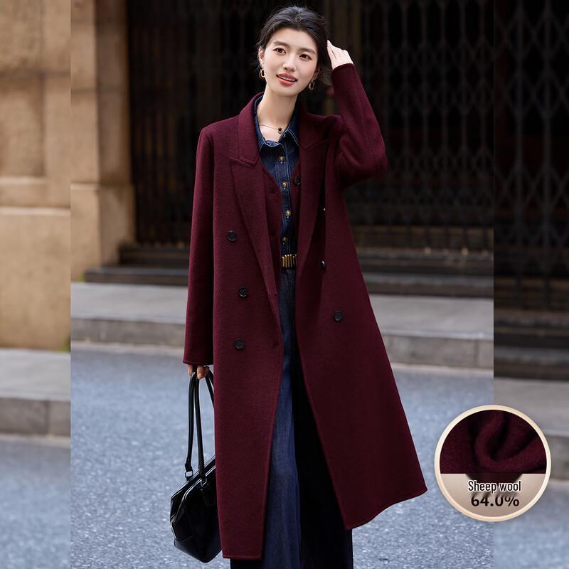 Bailuyu Women's Faux Two-Piece Lapel Wool Blend Double-Faced Coat