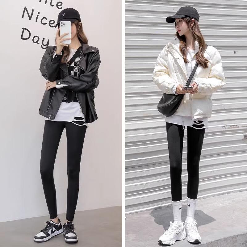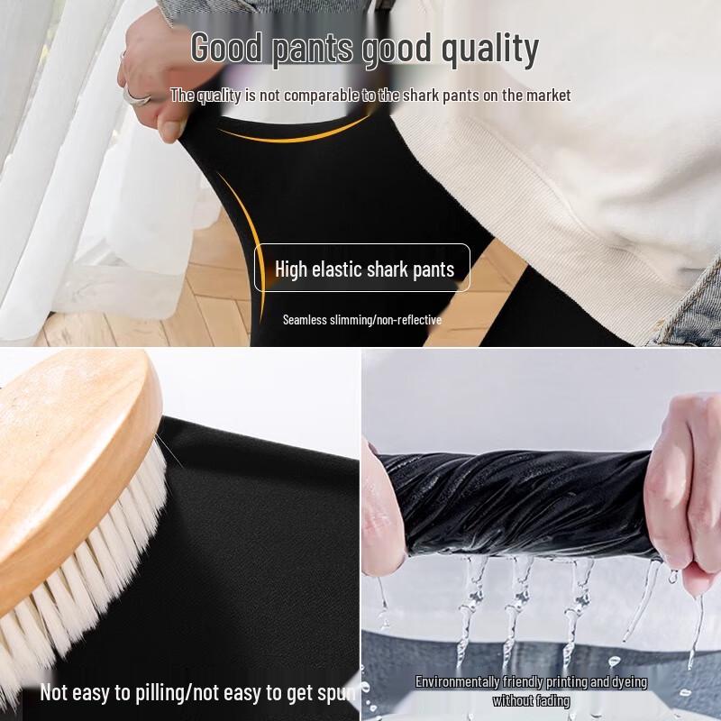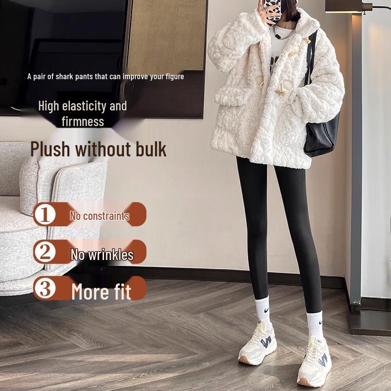 Langsha Women's High-Waist Fleece-Lined Shark Leggings
