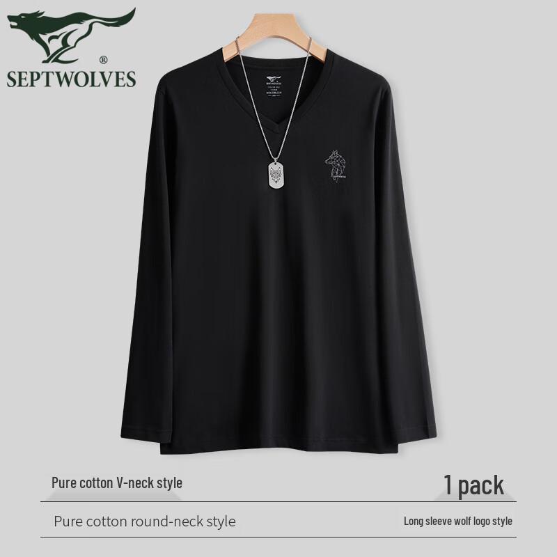 SEPTWOLVES Мужская футболка с длинными рукавами, V-образным вырезом и геометрическим принтом в виде головы волка, изготовленная из 100% хлопка.