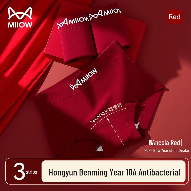 Maoren Женское счастливое красное новогоднее нижнее белье с плоскими углами, 3 шт.
