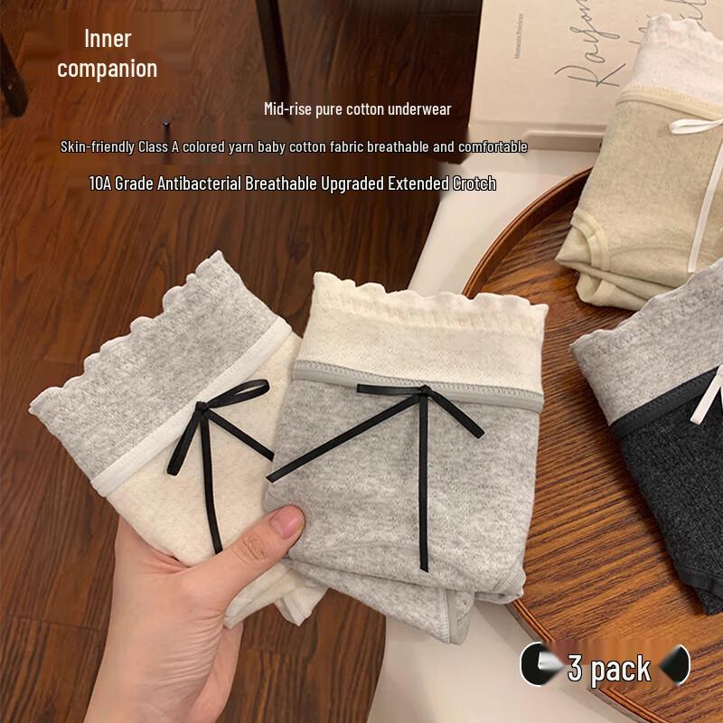 Женское нижнее белье из чистого хлопка средней посадки, 3 штуки, с кружевом-бантом, антибактериальное — купить товар онлайн с бесплатной доставкой по всему миру!