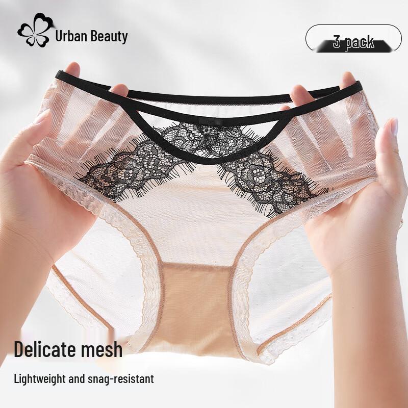 Женское антибактериальное кружевное нижнее белье Urban Beauty 10A с шелковой ластовицей, 3 штуки