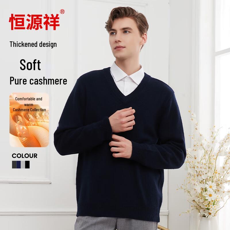 Hengyuanxiang Men's Thickened Pure Cashmere Sweater