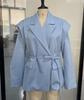 Женский пиджак-жакет с поясом и подплечниками - Европейский и американский стиль, Элегантный офисный блейзер — купить товар онлайн с бесплатной доставкой до всему миру!