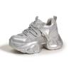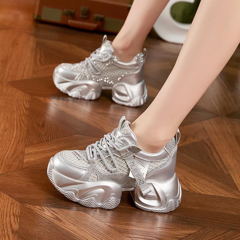 Туфли папы для девочки 2025 Осень Новые Каблук-подкова Сетчатые Дышащие Туфли на платформе со стразами Внутреннее увеличение высоты Повседневные кроссовки