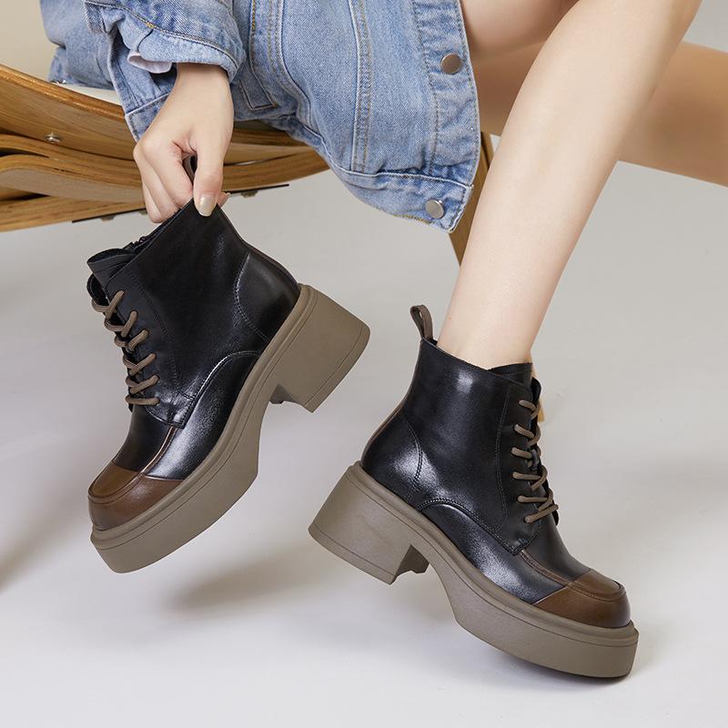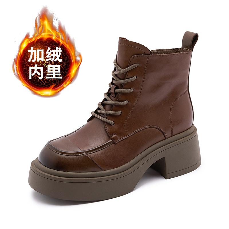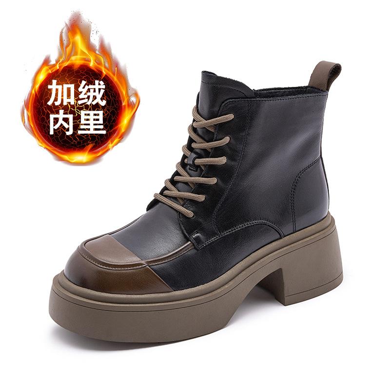 Кожаные ботинки Мартин женские 2025 осень-зима новые на толстой подошве универсальные короткие ботинки флисовые теплые черные ретро ботинки средней высоты