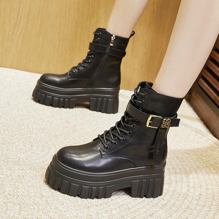 Ботинки Мартин на толстой подошве для женщин 2025 осень и зима новые ботильоны в британском стиле универсальные с небольшой внутренней высотой каблука черные ботинки для женщин