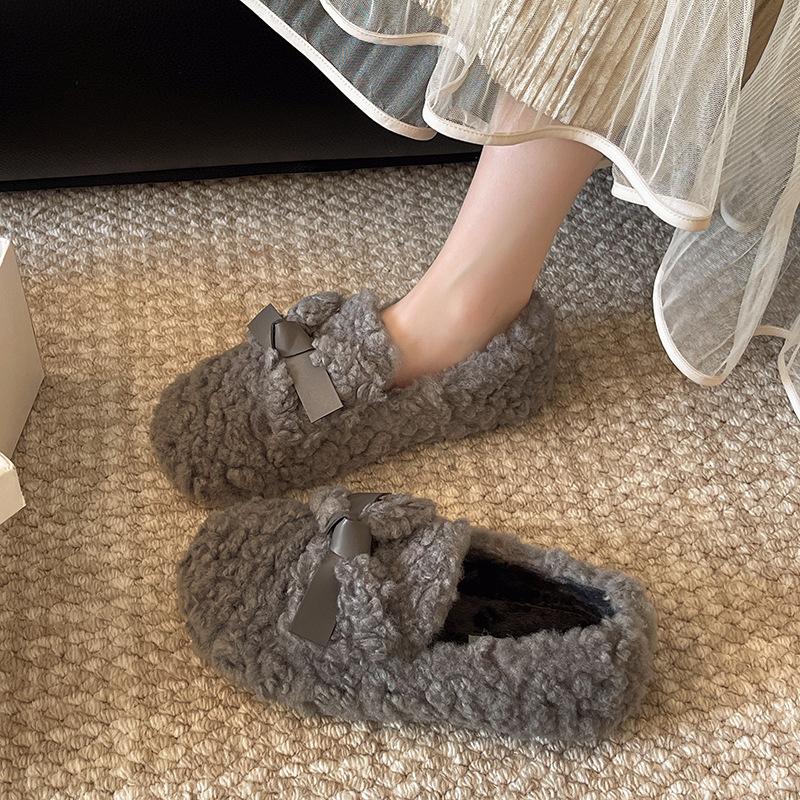 Интернет-знаменитость фея ветер пушистые туфли женская обувь осень-зима 2025 новая однопедальная теплая хлопковая обувь из овечьей шерсти